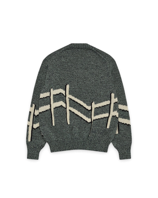 Navy/Green Wool Polyester Jersey Intarsia Jacquard