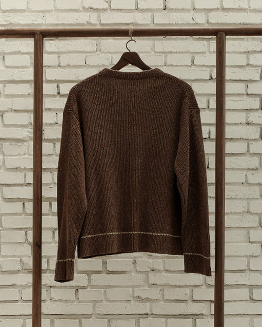 Brown Mix Slub Silk Contrast Crewneck