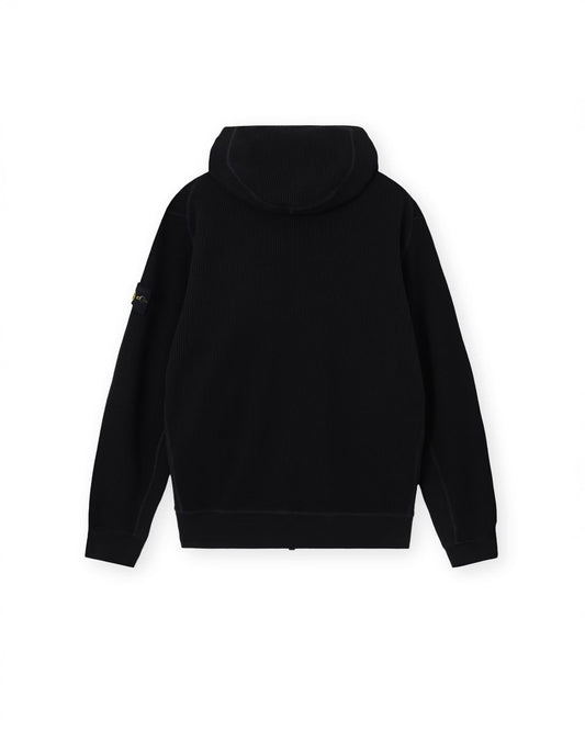 Black Organic Cotton Waffle Fleece Zipper-up Hooded Sweatshirt