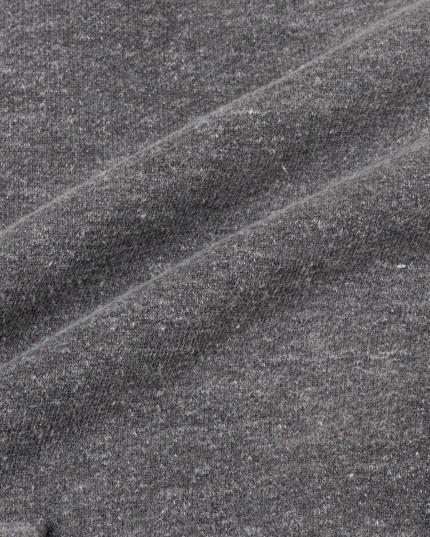 The tubular jersey cotton was manufactured by a hanging knitting machine in Wakayama.Rongalite finish achieves a natural fade of a used garment.