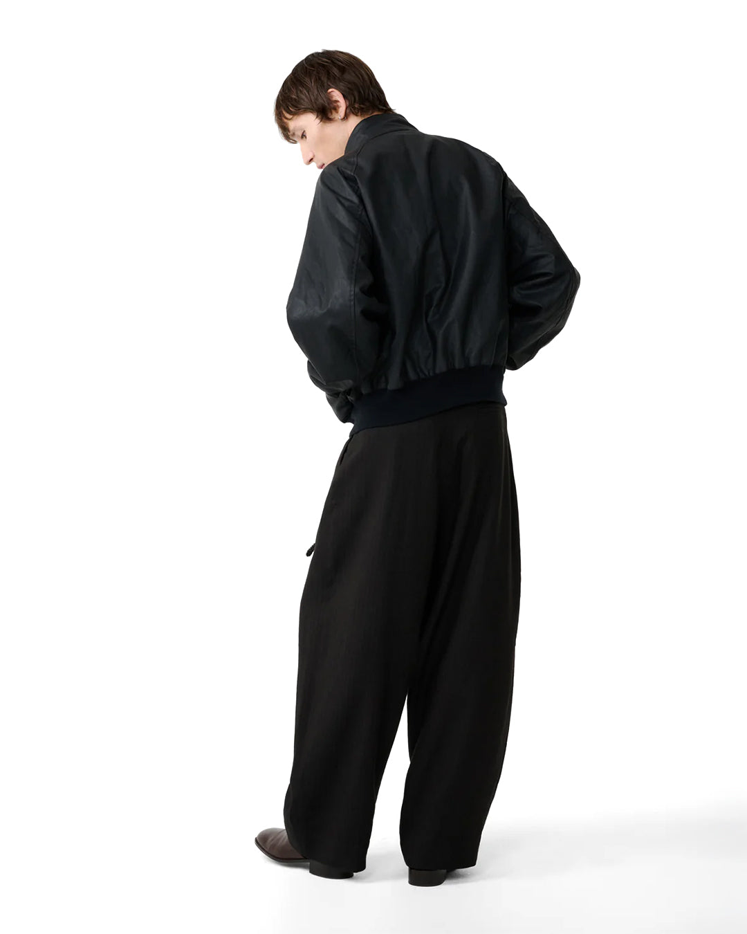The Over jacket is an illustration of our focus on quality materials. An update on the classic Harrington style, it’s cut from our polished cotton – a durable cotton base treated with a water-repellent coating that creates a subtly rich appearance reminiscent of leather – and features a traditional two-button stand collar, a two-way zip closure and an elasticated hem.