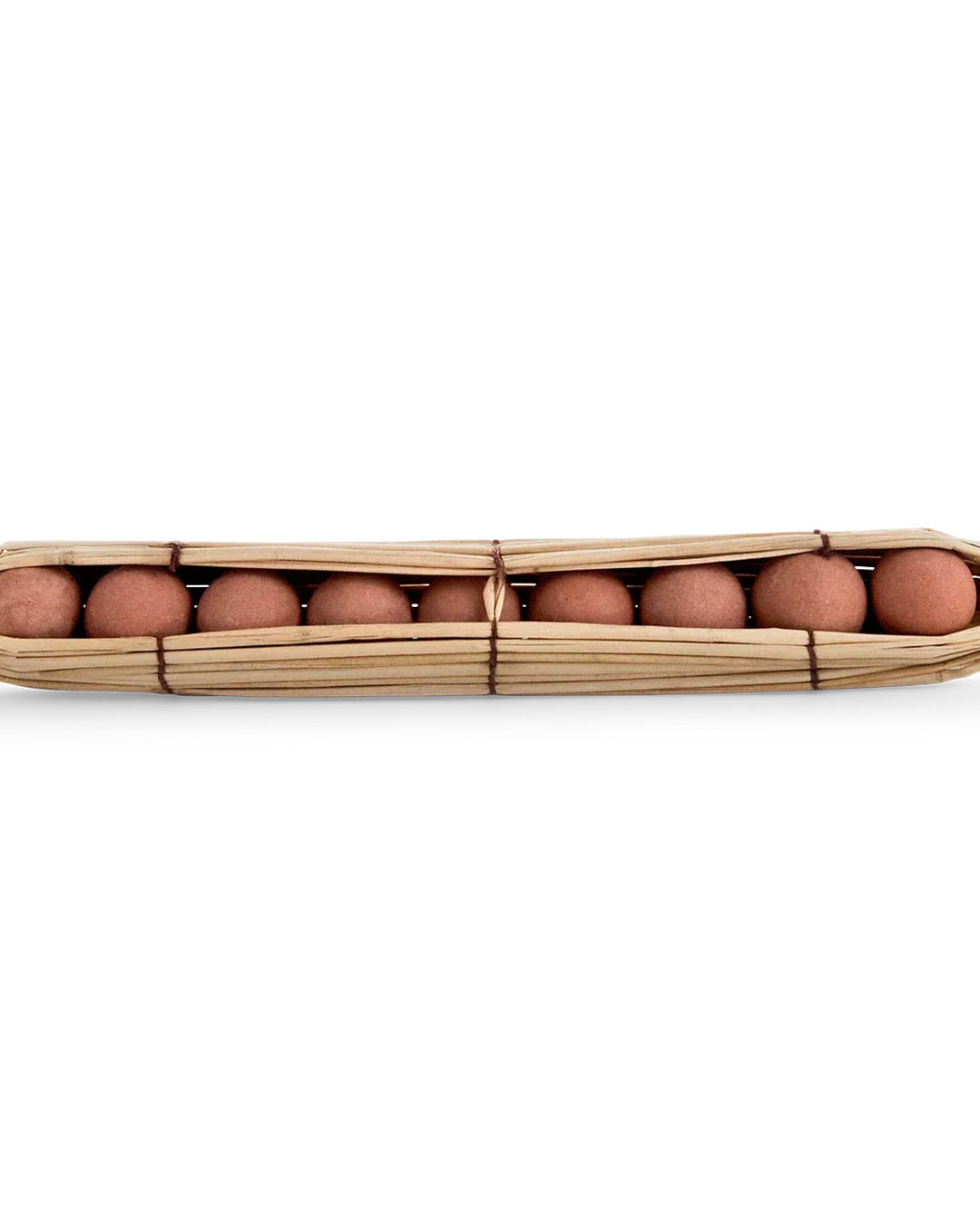 From Soil to Form is a natural oil diffuser containing nine red spheres made from Korean soil—the latest edition, the Chuseok Diffuser, with a rice straw case—is inspired by the autumn harvest festival celebrated in South Korea. Apply up to five drops of essential oil to the spheres, which will softly diffuse the fragrance while purifying the air and balancing the room’s humidity. An experience crafted by nature’s hands, and only available with Deep Forest fragrance.